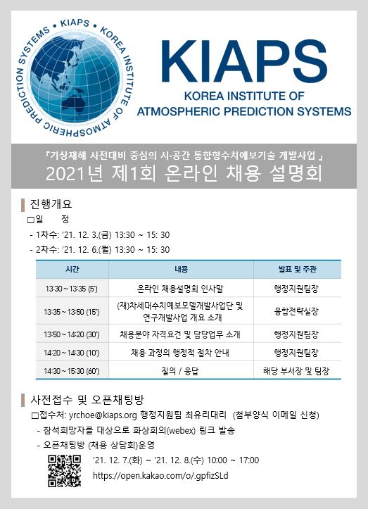 (재)차세대수치예보모델개발사업단에서 근무할 직원의 채용을 다음과 같이 공고하오니 성실하고 유능한 인재 여러분들의 많은 응모 바랍니다.