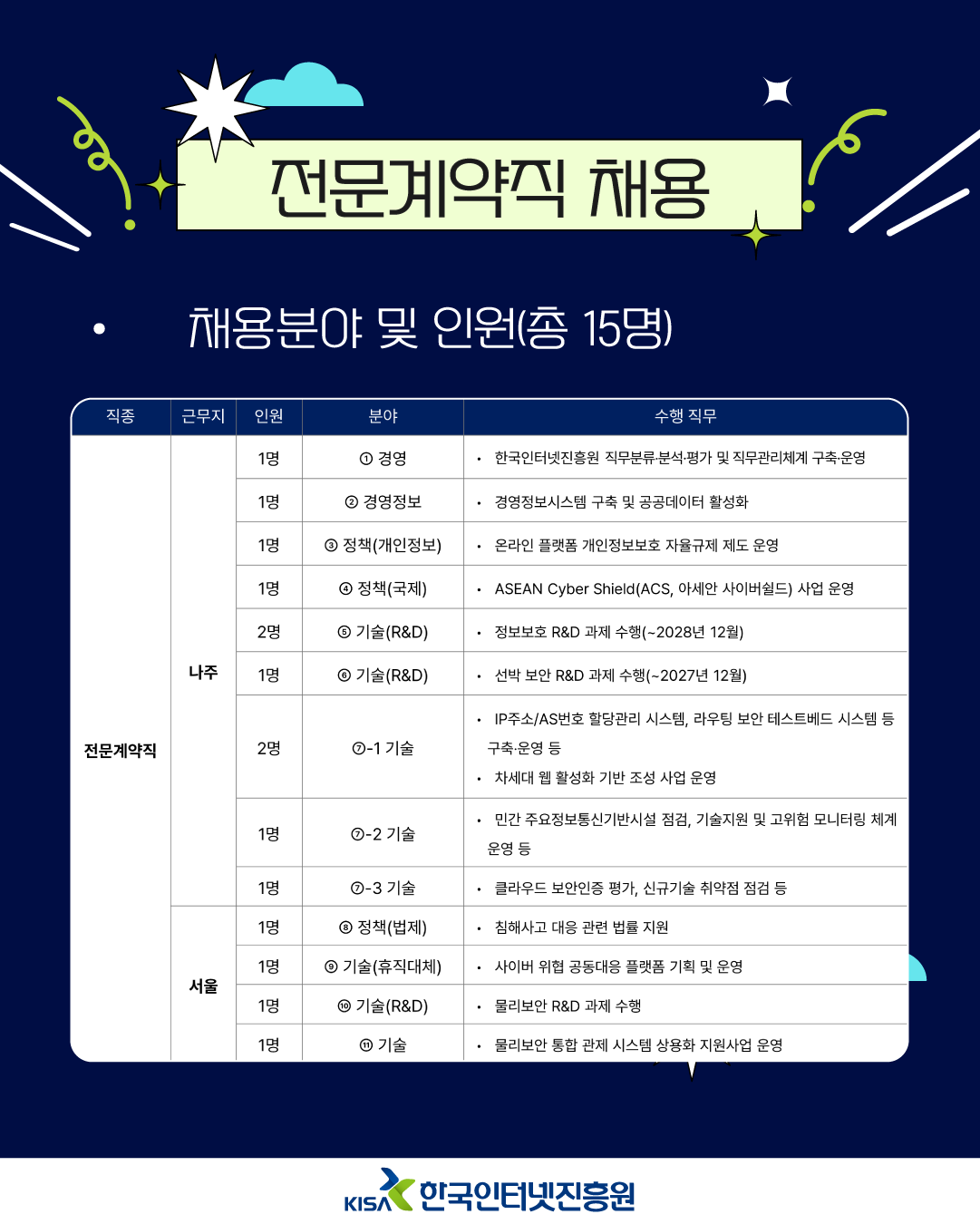 [한국인터넷진흥원] 2025년 한국인터넷진흥원 전문계약직 2차 채용 공고