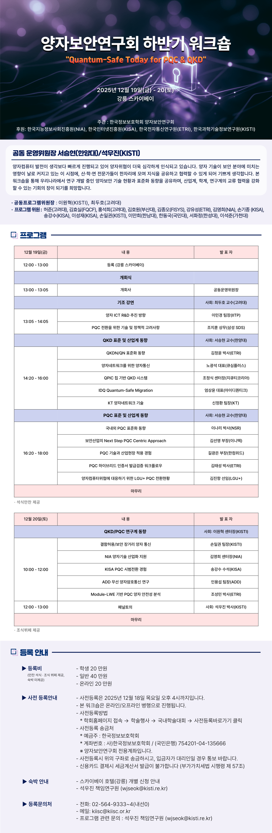 QKD와 PQC의 기술 현황을 공부하는 좋은 자리가 될 것입니다. 많은 참석 바랍니다.